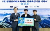 영암 전향윤 기자2026. 01.07[뉴스맘]배공휴 대양축산 대표가 6일 영암군청을 찾아 영암군미래교육재단에 지역 인재 육성 장학금 500만원을 기부했다. 2017년부터 해마다 장학금 전달을 이어온 배 대표는, 이날 기부에 아들 경준 씨와 함께해 눈길을 끌었다. 경준 씨는 아버지의 나눔을 이어 장학금 기부를 지속해 나가겠다는 뜻을 밝히며 세대를 잇는 나눔의 모범을 보였다. 배 대표는 “대양축산은 지역사회와 함께 성장해 왔고, 지역민에게 받은 신뢰에 보답하는 지역사회 환원은 당연한 일이다”고 말했다.