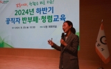 장흥 전향윤 기자2024. 09.23[뉴스맘]광양시는 9월 23일 시청 대회의실에서 정인화 광양시장을 비롯한 고위공직자, 실·단·과장, 팀장, 신규임용자·승진자, 부패 취약 분야 업무 담당자 250여 명이 참석한 가운데 “2024년 하반기 공직자 반부패 청렴교육”이 진행됐다고 밝혔다. 청렴연수원 청렴교육 전문 강사로 등록된 정희정 토마토교육연구소장은 2시간 동안 공무원 행동강령, 청탁금지법, 직장 갑질 근절 방안에 대한 강연을 펼쳤다. 정 소장은 이해충돌 상황이 발생하는 경우 공직자의 공정한 직무수행 보장을 위해 어떤 절차를 따라야만 하는지 구체적인 사례를 함께 소…