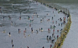 보성 전향윤 기자2024. 07.30[뉴스맘]진도군 진도읍에 위치한 청용어촌체험마을 앞 갯벌에서 오는 8월 3일 ‘개매기 체험’이 진행된다. 개매기는 조차를 이용한 전통 어업방식의 하나로 갯벌에 그물을 쳐 놓고 밀물 조류를 따라 들어온 물고기가 썰물 때 갇히도록 하는 전통 고기잡이 방식이다. 물이 빠진 갯벌 위 그물에는 주로 숭어, 농어, 돔 등의 다양한 어류가 걸리게 되며 이때 체험 관광객들이 갯벌 안으로 들어가 맨손으로 직접 잡는다. 체험료는 어른 2만원, 어린이 5천원이며 해당 금액은 어촌마을 발전기금으로 사용될 예정이다. 개매기 체험을 위한 갯벌 입장…