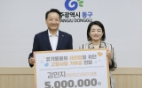 사회 전향윤 기자2024. 07.30[뉴스맘]광주 동구는 최근 고향사랑 기금사업 일환으로 신규 추진에 나선 유기동물 구조·보호 사업에 도움을 주고자 김민지 마인드디자인 대표가 5백만 원을 기부했다고 밝혔다. 김민지 대표는 이번 기부에 대해 “동물보호소에서 행해지는 불법 행위와 예산적인 면과 인식의 문제로 지방자치단체가 유기동물 보호에 어려움을 겪고 있다”는 언론 보도를 통해 관심을 갖던 중 ‘유기동물 구조왉맬