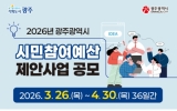 광주 전향윤 기자2026. 03.31[뉴스맘] 광주광역시는 2027년도 예산 과정에 시민참여를 보장하기 위한 ‘시민참여예산 제안사업’을 4월30일까지 접수한다. 시민참여예산은 재정 운영의 투명성을 높이고, 재정민주주의를 강화해 시민 삶의 질을 향상시키기 위한 제도다. 광주시에 거주하는 시민이나 단체는 누구나 사업을 제안할 수 있다. 제안 대상 사업은 단년도에 완료되는 광주시 소관 사무로 ▲시정참여형 ▲청년참여형 등 두 가지를 접수한다. 시정참여형은 시민 생활과 밀접하고 시민 수혜도가 높은 5억원 이하 사업이다. 청년참여형은 일자리, 창업지원, 맞춤형 교육…