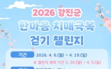 강진 전향윤 기자2026. 03.31[뉴스맘] 강진군 보건소(치매안심센터)가 치매예방에 대한 관심을 높이고 건강 생활 실천을 독려하기 위해 오는 4월 6일부터 19일까지 14일간 '한마음 치매극복 걷기챌린지'를 운영한다. 이번 행사는 군민이 한마음으로 치매 극복을 기원하고 치매에 대한 부정적인 인식을 개선해 치매 친화적 지역사회 환경 조성하기 위해 마련됐다. 챌린지는 모바일 걷기 플랫폼인 ‘워크온’ 앱을 통해 진행되며 강진군민이라면 누구나 참여할 수 있다. 참여방법은 스마트폰 앱스토어에 '워크온' 설치 및 회원가입 후 ‘강진군 치매 극복 걷기’ 챌린지 참여하기…