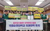 [뉴스맘]순천 각계각층에서 순천대학교 의과대학 유치를 위한 활동이 활발히 이뤄지는 가운데, 순천시청 공무직 대표노조인 전국민주연합노동조합 순천시지부도 순천대 의과대학 유치 염원에 동참했다. 17일 전국민주연합노조 순천시지부장과 노조원들은 ‘순천대학교 의과대학 유치지지를 위한 서명부’에 연서하고 피켓 퍼포먼스를 펼쳤다. 이는 전라남도의 ‘전남권 단일의대 공모 방침’에 반대하고 국립순천대학교에 의과대학을 신설하자는 전남동부권 100만 지역민의 염원에 노조도 힘을 보태기 위함이다. 노조 관계자는 “전남동부권은 전남 경제의 70%를…