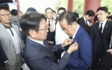 광주 전향윤 기자2024. 05.17[뉴스맘]강기정 광주광역시장과 홍준표 대구광역시장은 제44주년 5·18민주화운동 기념일을 맞아 17일 국립5·18민주묘지를 함께 참배하며 5·18정신 헌법전문수록에 힘을 모으기로 했다. 강기정 시장은 이날 국립5?18민주묘지에서 홍준표 대구시장과 이만규 대구시의회 의장, 이종화 대구경제부시장 등 대구시 대표단을 직접 맞이했다. 강 시장은 홍 시장에게 5·18민주화운동 배지를 달아주고 광주 방문을 환영했다. 이들은 헌화·분향한 뒤 윤상원 열사와 전영진 열사 묘소를 찾아 추모했다. 강 시장은 홍 시장에게 민주주의를 위해 산화한 윤상…