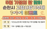 강진 전향윤 기자2024. 04.26[뉴스맘]순천시는 5월 가정의 달을 맞아 오는 29일부터 5월 8일까지“순천 고향사랑기부제 1+1+1 이벤트”를 진행한다고 밝혔다. 이벤트는 기간 중 고향사랑e음 사이트 또는 NH농협을 방문하여 순천시에 10만원 이상 기부하고 답례품 주문까지 완료하면 자동으로 응모된다. 이벤트에 당첨된 기부자는 세액공제 혜택(10만원 전액 세액공제 및 초과분 16.5% 공제), 답례품 선택(기부액의 30%)과 더불어 순천만국가정원 입장권(성인) 2매까지 추가로 받을 수 있다. 당첨자 발표는 기부 익일 개별 공지되며, 총 50명에게 제공될 예정이…