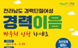 전남 전향윤 기자2024. 03.24[뉴스맘]전라남도는 출산과 육아 등으로 직장을 그만둔 후 재취업에 어려움을 겪는 경력 단절 여성에게 구직에 필요한 취업·면접 준비 비용을 지원하는 ‘경력이음바우처’ 이용자를 오는 29일까지 모집한다고 밝혔다. 경력이음 바우처 이용자에게는 취업·면접 준비 비용으로 사용할 수 있도록 50만 원이 지원된다. 신청일 기준 전남에 1년 이상 주소를 두고, 취업 지원기관에 구직을 등록한 30~65세(1959년생~1993년생)로, 재취업을 바라는 중위소득 150% 이하 경력 단절 여성을 대상으로 지원한다. 다만 고용노동부 구직촉진수당, 취…