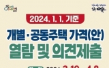 순천 전향윤 기자2024. 03.19[뉴스맘]순천시는 1월 1일 기준 개별주택가격 열람 및 의견제출 기간을 3월 19일부터 4월 8일까지 운영한다고 밝혔다. 이번에 열람 대상 개별주택은 28,325호로, 개별주택특성 등을 조사해 산정했며, 가격의 공정성과 객관성을 높이기 위해 한국부동산원(순천지사)의 산정가격 적정성 여부 등의 검증 절차를 마쳤다. 개별주택가격의 열람은 시 홈페이지(분야별정보→건설·부동산→부동산정보→개별/공동주택가격 열람)와 부동산공시가격알리미를 통해 가능하다. 열람가격에 의견이 있는 소유자 및 이해관계자는 의견서를 작성하여 시청 세정과 및 읍·…