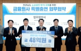 광주 전향윤 기자2024. 03.18[뉴스맘]전라남도는 소상공인 금융지원을 통한 경영위기 극복을 위해 18일 도청에서 전남신용보증재단, 농협·우리·국민·하나·신한·카카오뱅크 6개 금융회사와 48억 원 특별출연 협약을 했다. 이로써 총 출연금은 63억으로 늘었다. 협약식에는 김영록 전남도지사, 이강근 전남신용보증재단 이사장, 정재헌 NH농협은행 전남본부장, 김성진 우리은행 목포금융센터장, 김성진 KB국민은행 호남1(광산)지역본부장, 양동원 하나은행 호남영업그룹 부행장, 김국환 신한은행 호남본부장, 이병수 카카오뱅크 개인사업자캠프장 등이 참석했다. 협약은 고금리·고물…