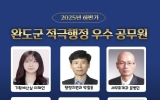 영암 전향윤 기자2025. 12.31[뉴스맘]완도군은 지난 24일 적극행정위원회를 개최하고 ‘2025년도 하반기 적극 행정 우수 공무원’ 4명과 협업팀 2팀을 선정했다. 적극 행정 우수 공무원에는 기획예산실 이혜인 주무관, 행정지원과 황철웅 팀장, 세무회계과 문병민 팀장, 금일읍 안아란 주무관, 협업팀은 서무팀과 사회재난팀이 이름을 올렸다. 적극 행정 우수 공무원 선정은 총 9개 적극 행정 사례 중 예선 심사를 거쳐 본선에 오른 7개(개인 6, 협업팀 1) 사례에 대해 ‘소통 24’의 전 국민 온라인 투표와 발표를 거쳐 최종 선발됐다. 기획예산실 이혜인 주무관은…