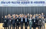 [뉴스맘]전라남도 나주시와 한국전력공사 상생생태계조성처는 최근 나주 혁신산단에 위치한 에너지신기술연구원에서 ‘나주 강소특구사업 성과공유 및 사업 설명회’를 개최했다고 11일 밝혔다. 설명회는 나주시, 한국에너지공과대학교, 전남테크노파크, 녹색에너지연구원, 에너지밸리기업개발원, 에너지밸리산학융합원 등 지역 혁신기관 및 기업들의 지난해 사업 성과와 올해 사업 계획을 공유하고 사업 참여를 유도하고자 마련됐다. 강소연구개발특구는 지역에 위치한 주요 거점 기술핵심기관을 중심으로 소규모·고밀도 집약 공간을 연구개발(R·D)특구로 육성하는 …