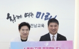 함평 전향윤 기자2024. 03.07[뉴스맘]NH농협은행 전남본부가 7일 전남미래교육재단에 국제교류 지원 기부금 5,000만 원을 전달했다. 이날 기부금 전달식에는 김대중 이사장을 비롯해 정재헌 NH농협은행 전남 본부장, 박희옥 전남영업부장 등이 참석했다. 이번 기부금은 ‘2024 대한민국 글로컬 미래교육박람회’의 성공적인 개최와 국제교류를 통해 전남의 학생들이 세계를 넘나드는 글로벌 인재로 성장하도록 돕기 위해 마련됐다. 전달된 기부금은 전남 학생들의 국제교류와 공생하는 글로벌 인재 양성을 위해 사용될 예정이다. 정재헌 본부장은 “이번 기부금 전달을 …