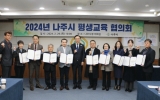 정치 전향윤 기자2024. 03.07[뉴스맘]전라남도 나주시는 최근 나주시청 이화실에서 2024년도 나주시 평생교육협의회의 신규 위원을 위촉하고 안건 협의 및 발전방안을 논의했다고 7일 밝혔다. 이번 협의회에서는 ▲부의장 선출 ▲전년도 사업 결과 및 성과 공유 ▲2024년 주요사업 계획 등을 심의.의결했다. 특히 전남 최초로 추진하고 있는 ‘나주愛 배움바우처’ 확대 운영과 2년 연속 교육부 지정 ‘장애인 평생학습도시’ 추진 방향, 제4회 전남도 평생학습박람회 주관기관 선정에 따른 실행 계획 등을 집중 논의했다. 윤병태 나주시장은 “새롭게 구성된 평생교육협의회의가…
