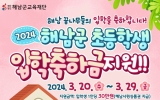 함평 전향윤 기자2024. 03.06[뉴스맘]해남군이 초등학교 입학생들을 위한 입학 축하금을 지원한다. 대상은 올해 초등학교를 입학한 신입생으로 각 30만원을 해남사랑상품권으로 지급한다. 집중 신청기간은 3월 20일부터 29일까지 주소지 읍면사무소에서 방문 신청하며, 신청기간을 놓친 경우 해남군 교육재단으로 직접 방문 신청하면 된다. 입학일 기준 해남군에 주소를 두고 초등학교에 최초 입학한 학생으로, 입학생의 친권자 또는 사실상 양육하고 있는 보호자가 신청할 수 있다. 해남군 이외 지역에서 입학한 후 관내 초등학교로 전학 온 경우는 지원 대상에서 제외된다…