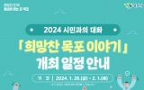 정치 전향윤 기자2024. 01.24[뉴스맘]목포시가 오는 26일부터 2월 1일까지 5개 권역별로 2024 시민과의 대화'희망찬 목포 이야기'를 개최한다. 시는 이번 행사를 통해 2023년도 시정 성과와 2024년도 주요 시정 운영 방향을 시민들과 공유하고, 다양한 분야의 시민 의견을 수렴해 시정에 적극 반영할 방침이다. 특히, 이번 대화는 기존 행사 방식에서 벗어나 박홍률 시장이 직접 주요 시정을 시민들에게 설명하고, '희망찬 목포 이야기'라는 주제의 신년 대담을 토크 콘서트 형식으로 진행할 예정이다. 시는 이런 특색있는 시정 보고를 통해 시민들에게 한 걸음 더…