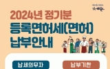 정치 전향윤 기자2024. 01.12[뉴스맘]영광군은 오는 1월 31일까지 2024년 자동차세 연납 신청을 받는다. 자동차세 연납 제도는 매년 6월, 12월에 부과되는 자동차세를 미리 납부하면 연세액(신고·납부기간인 1월을 제외한 2~12월 기간의 연세액)의 5%를 공제해주는 제도로 1월뿐 아니라 3월, 6월, 9월에도 신청이 가능하며 신청기간에 따라 공제율이 차등 적용된다. 신고방법으로는 인터넷 위택스·스마트위택스 앱을 통한 전자 신고와 읍·면사무소 및 군청 방문·전화 신고가 있다. 기존에 연납한 차량은 별도의 신청 없이 납부고지서가 발부되므로 1월 31일까…