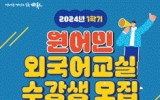 순천 전향윤 기자2024. 01.10[뉴스맘]순천시는 2024년 1학기 원어민 외국어교실 교육에 참여할 수강생을 오는 1월 10일부터 1월 17일까지 8일간 모집한다. 이번 1학기는 1월 22일부터 4월 13일까지 총 3개월간 운영된다. 영어.중국어 2개 분야 총 14개 강좌로 수강생 정원 15명 중 10명 이상이면 강좌가 개설된다. 1학기(3개월) 수강료는 45,000원이며, 교재비는 수강생 부담이다. 수강신청은 순천시평생교육포털 홈페이지를 통해 선착순으로 접수하며 순천시민이면 누구나 가능하다. 기타 자세한 사항은 순천시 평생교육과에 문의하면 된다. 시…