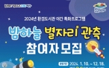 여수 전향윤 기자2024. 01.09[뉴스맘]여수시 환경도서관은 주 2회 야간 특화프로그램으로 ‘밤하늘 별자리 관측’을 운영한다고 9일 밝혔다. ‘밤하늘 별자리 관측’은 시민들에게 이해하기 쉬운 별자리 교육과 천체관측 체험으로 구성, 환경도서관 강의실 및 옥상천문대 등에서 매주 수·금요일 저녁 7시부터 9시까지(하절기 7시 30분부터 9시 30분까지)까지 운영된다. 여수시민 누구나 참여할 수 있으며 개인은 시립도서관 홈페이지에서 관측 희망일 1일 전까지, 단체는 별도 참가신청서 제출로 1주일 전까지 신청하면 된다. 기타 자세한 사항은 시립도서관 홈페이지에…