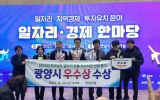 순천 전향윤 기자2023. 12.22[뉴스맘]광양시는 22일 전남도청 왕인실에서 열린 ‘전라남도 일자리·경제 한마당’ 행사에서 2023년 전남 일자리창출 부문 ‘우수상’을 수상했다. 전라남도 일자리창출 우수시군 평가는 도내 22개 시군을 대상으로 고용지표, 일자리 예산 증감률, 청년 일자리, 신중년 일자리, 취약계층 일자리 등 6개 분야 16개 항목의 실적을 평가해 선정한다. 시는 지역주도형 청년일자리사업, 지역·산업 맞춤형 일자리사업, 신중년·여성·장애인·노인일자리 사업을 통해 올 한해 총 5,049명의 일자리를 창출했다. 특히, 광양시 주력산업이자 지역혁신전…