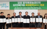 담양 전향윤 기자2023. 12.20[뉴스맘]담양군은 지난 19일 군청 영상회의실에서 ‘담양 음식특화농공단지’ 입주의향서를 제출한 ㈜에코월드팜 등 9개 기업과 투자협약을 체결했다고 밝혔다. 이번 협약을 통해 담양군은 농공단지 조성 사업이 원활히 추진될 수 있도록 행정 절차 추진과 홍보에 최선을 다하고, 투자협약 기업은 음식특화농공단지 입주 의향과 함께 담양군의 산업 발전 및 일자리 창출 등을 협력하게 된다. 지금까지 13개 기업이 담양군에 입주의향서를 제출했으며, 이번에 협약을 체결한 기업은 주식회사 ㈜에코월드팜, 엔피케이(주), 농업회사법인 ㈜비제이, ㈜오하이…