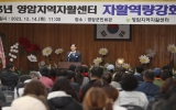 사회 전향윤 기자2023. 12.19[뉴스맘]영암지역자활센터가 14일 군민회관에서 자활참여자·종사자 등 180여 명이 참석한 가운데 ‘2023년 자활역량 강화 한마당 행사’를 개최했다. 이날 행사는 자활사업 참여자들의 자립심과 자활의지를 높일 수 있도록 마련됐다. 1부 기념식에서는 자활사업 유공자가 상을 받았고, 자활센터 1년 발자취 동영상 상영됐다. 2부에서는 ‘자활센터와 지역사회 복지 활성화 계획 및 방향’을 주제로 특강에 열렸고, 자활인들의 어울림한마당이 이어졌다. 이삼행 센터장은 “각자 맡은 바 자리에서 당당하고 성실하게 책임을 다해준 자활사업…