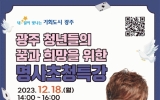 광주 전향윤 기자2023. 12.14[뉴스맘]광주광역시는 18일 오후 2시부터 4시까지 시청 대회의실에서 ‘명사 초청 청년특강’을 개최한다. ‘명사 초청 청년특강’은 광주 청년들에게 꿈과 희망을 심어주고 더 나은 미래 비전 및 방향 제시를 위해 지난해부터 운영하고 있다. 지난해에는 김태호 PD가 처음으로 특강을 했으며, 올해는 대한민국 대표 마술사로 활동하고 있는 최현우 마술사가 강단에 선다. 최현우 마술사는 ‘편견을 넘어 꿈과 희망의 주문을 걸자’를 주제로 마술사가 되기까지 겪은 인생 극복 스토리와 다른 시각으로 세상을 바라보는 방법을 마술 공연과 함께 전할 …