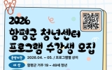 함평 전향윤 기자2026. 03.29[뉴스맘]전남 함평군이 청년센터 프로그램 참여자를 추가 모집한다. 함평군은 29일 “2026년 상반기 청년센터 프로그램 참여자를 선착순으로 추가 모집한다”고 밝혔다. 지원 대상은 공고일 기준 함평군에 주민등록을 두고 거주하고 있는 19세 이상 49세 이하 청년이다. 추가 모집 프로그램은 ▲공인중개사 자격증반 ▲창업자 회계·세무 ▲재무설계 기초교육 ▲향수 만들기 클래스 등 총 4개 강좌다. 참여 희망자는 다음달 3일까지 구비서류를 갖춰 네이버폼 또는 전자우편으로 신청하면 된다. 군은 신청자에 대한 자격요건 확인 등을 거…