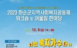 사회 전향윤 기자2023. 11.29[뉴스맘]‘2023 화순군지역사회복지공동체 워크숍 및 어울림 한마당이 12월 8일 금요일 14시 하니움문화스포츠센터 적벽실에서 열린다. 복지공동체 역량 강화와 민.관 협력을 통한 복지사각지대 발굴.지원을 위해 마련된 이번 행사는 전남 화순군(군수 구복규)이 주최하고 화순군지역사회보장협의체(민간공동위원장 김성식)가 주관한다. 이날 행사는 광주사회복지공동모금회 등의 지원을 받아 식전 축하공연을 시작으로 복지공동체 활약사례 공유, 유공자 표창, 슬로건 퍼포먼스 등 1부 워크숍에 이어 초대 가수 공연, 복지업무 종사자 노래 경연을 통해…