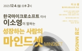 고흥 전향윤 기자2023. 11.29[뉴스맘]순천시는 오는 12월 4일 월요일 14시 문화건강센터 다목적홀에서 ‘성장하는 사람의 마인드셋’이라는 주제로 이소영 한국마이크로소프트 이사 초청 강연을 진행한다. 이소영 이사는'세바시','체인지그라운드','삼성'등에서 강연해 왔으며, 저서로는 ‘당신은 다른 사람의 성공에 기여한 적 있는가?’, ‘홀로 성장하는 시대는 끝났다’ 등이 있다. 이 이사는 강연을 통해 좋은 대학을 진학하는 등 조건을 완수해야만 성장할 수 있다는 고정 마인드셋을 버리고, 자신이 좋아하는 분야를 찾아 꾸준히 자신의 삶을 디자인하는 미래형 성장 마…