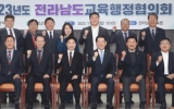 무안 전향윤 기자2023. 11.20[뉴스맘]전라남도와 전남도교육청은 20일 전남도교육청 상황실에서 ‘2023년 전라남도 교육행정협의회’를 열어 교육발전특구 시범지역 선정 등 교육 현안 문제 공동 해결을 통한 전남 교육 발전을 위해 머리를 맞댔다. 김영록 전남도지사와 김대중 도교육감, 두 기관 주요 간부와 교육행정협의회 위원이 참석한 가운데 6건의 안건을 논의하고, 적극 협력하기로 했다. 전남도교육행정협의회는 전남도와 도교육청이 교육사업의 협치와 조정을 통해 도민에게 질 높은 교육서비스를 하기 위해 구성한 협력기구다. 2014년부터 개최해 2022년까지 총 44건…
