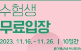 전남 전향윤 기자2023. 11.17[뉴스맘]전남도립미술관이 ‘2024학년도 대학수학능력시험’ 수능생의 안식처로서 전시 무료입장 이벤트를 실시한다. 이번 이벤트는 오는 26일까지 10일간 진행되며, 본인 명의의 수험표를 지참하면 전시 무료입장 혜택을 받을 수 있다. 현재 도립미술관에서는 ‘황영성 초대전 : 우주 가족 이야기’와 ‘아트·테크 : 진동하는 경계들’이 진행되고 있다. 오는 21일에는 새로운 전시 ‘송필용 개인전 : 물의 서사’가 시작돼 보다 풍성한 전시를 즐길 수 있다. ‘황영성 초대전 : 우주 가족 이야기’는 가족을 주제로 60여 년 연구를 통…