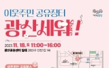 남구 전향윤 기자2023. 11.15[뉴스맘]광주 광산구는 18일 광산공유센터에서 이웃주민 공유장터 ‘광산세워’가 열린다고 밝혔다. 주민의 활발한 공유활동을 촉진하고, 자원순환 실천을 확산하기 위해 마련한 이번 행사는 △이웃주민 공유관 △N(엔)개의 공유강좌 △도장 찍기(스탬프) 이벤트로 구성됐다. 이웃주민 공유관에서는 장식물(액세서리), 의류, 문구류 등 물건을 나누고 판매하는 공간과 붕어빵, 닭강정 등 먹거리관, 마크라메 공예 등을 할 수 있는 체험관 등 총 14개 관을 주민이 직접 운영한다. ‘N개의 공유강좌’에서는 음식 만들기, 새활용(업사이클링) 공예 …