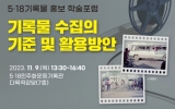 사회 전향윤 기자2023. 11.08[뉴스맘]5·18민주화운동기록관은 9일 7층 다목적강당에서 ‘기록물 수집의 기준 및 활용방안’을 주제로 5·18민주화운동 43주년 기념 5·18기록물 홍보 학술포럼을 개최한다. 이번 포럼은 1, 2부로 나눠 기록물 수집에 대한 발제와 토론 등 순으로 진행된다. 1부에서는 김득중 국사편찬위원회 역사진흥실 편사연구관이 ‘기록물 수집의 원칙 및 절차’를 주제로 발제한다. 이어 윤덕영 연세대학교 국학연구원 연구원, 박주현 전남대학교 문헌정보학과 교수가 토론한다. 2부에서는 이정연 국가기록원 기록협력과 학예연구사가 ‘수집기록물의 …