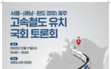 정치 전향윤 기자2025. 12.05[뉴스맘]해남군은 오늘 17일 국회도서관 대강당에서 해남과 완도를 경유해 제주까지 연결되는‘서울~(해남·완도 경유) 제주 고속철도 유치 국회토론회’를 개최한다. 이번 토론회는 지역구 의원인 박지원 의원을 비롯한 해남 출신인 민홍철·민병덕·민형배 의원과 완도 출신의 허종식·손명수 의원이 공동 주최하며, 해남군과 완도군이 주관한다. 토론회는 서울~제주간 고속철도의 당위성을 설명하고 국회 차원에서 대국민 홍보를 통한 분위기 확산으로 제5차철도망 구축계획 반영을 위해 마련됐다. 서울~제주 고속철도 건설사업은 총사업비 27조원이 투…