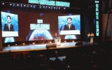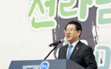 정치 전향윤 기자2023. 10.25[뉴스맘]전라남도는 25일 도청 김대중강당에서 200만 도민 소통과 화합의 장인 ‘제27회 도민의 날’ 기념식을 열어 ‘자랑스러운 전남인 상’을 시상하고, ‘하나된 전남! 행복한 전남! 새로운 전남!’을 힘차게 열어갈 것을 다짐했다. ‘전남을 잇다, 세계로 날다’를 주제로 열린 이날 기념식은 도민헌장 낭독, 자랑스러운 전남인 상 시상, 전남의 역사와 미래를 담은 기념공연, 전남의 밝은 미래를 향해 떠나는 힘찬 우주선 발사 퍼포먼스 순으로 진행됐다. 특히 기념공연과 퍼포먼스에선 전남의 과거와 미래 이야기를 입체 발광다이오드(LED…