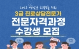 완도 전향윤 기자2023. 10.24[뉴스맘]학부모에서 진로 학습 플래너로 나아가는 전문자격과정이 운영된다. 영암군진로진학지원센터가 11월 9~10일 초·중·고 자녀를 둔 학부모가 참여할 수 있는 ‘3급 진로상담전문가 자격증’ 취득 과정을 개설한다. 학부모들이 자녀들의 진로·진학 고민을 덜어줄 수 있도록 이번 과정은 마련됐다. 과정 이수 시 교육부 인증 교육기관에서 발급하는 자격증을 취득할 수 있다. 이수 조건은 출석 30점, 과제 및 발표 10점, 시험 60점 중 총 70점 이상이다. 자격과정 주요 내용은 △진로상담 진단 도구 이해·활용 △20…
