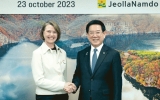 함평 전향윤 기자2023. 10.23[뉴스맘]김영록 전라남도지사는 23일 오전 도청 접견실에서 안네 카리 한센 오빈드(Anne Kari Hansen Ovind) 주한 노르웨이 대사를 만나 해상풍력 등 재생에너지분야 협력 및 지역 발전을 위한 교류방안을 협의했다. 이번 만남은 기후변화에 따른 지속 가능한 해양, 재생에너지 발전 확대를 위한 글로벌 협력 방안을 논의하기 위해 대사관 측의 요청으로 이뤄졌다. 특히 주한 노르웨이 대사는 이날 해상풍력 연관기업·에너지협회 관계자 등 비즈니스 사절단(18명)과 동행했다. 김영록 지사는 이 자리에서 “전남은 신안 8.2GW 해…