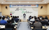 고흥 전향윤 기자2023. 10.23[뉴스맘]고흥군은 지난 20일 고흥분청문화박물관에서 공무직·기간제 직원 50여 명이 참석한 가운데 2023년 공무직 역량강화 워크숍을 실시했다. 하반기 공직자 맞춤형 직무교육의 일환으로, 바람직한 공직관 정립과 청렴의식 증진을 통한 건전한 조직문화 조성을 위해 실시된 이번 워크숍은 ▲친절한 민원응대 해법 ▲설득력 있는 스피치 ▲음악으로 소통하는 힐링 프로그램 등의 내용으로 유익하면서도 쉽게 이해할 수 있도록 진행됐다. 공영민 군수는 인사말을 통해 “친절·청렴이 고흥군의 브랜드가 될 수 있도록 직원 여러분께서 노력해달라”며, “군…