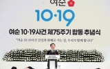 해남 전향윤 기자2023. 10.19[뉴스맘]전라남도는 여수·순천 10·19사건 75주기를 맞아 희생자의 넋을 추모하고 유족의 아픔을 위로하기 위한 여수·순천 10·19사건 제75주기 합동추념식을 19일 고흥문화회관 광장에서 개최했다. 이날 추념식에는 김영록 전남도지사, 서동욱 전남도의회 의장, 김승남 국회의원, 서동용 국회의원, 김대중 전남도교육감, 공영민 고흥군수 등 지역 단체장과 정치인들이 참석했다. 정부 대표로는 구만섭 행정안전부 차관보가 자리를 함께 했다. 이규종 여순 전국 유족 총연합 상임대표를 비롯한 여순사건 유족 400여 명도 참석해 과거사에 대한 반…