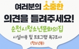 정치 전향윤 기자2023. 09.27[뉴스맘]순천시 청소년문화의집은 10월 31일까지 문화의집 이용 청소년과 학부모 500명을 대상으로 ‘2023년 순천시청소년문화의집 시설이용 및 프로그램 욕구조사’를 실시한다. 이 조사는 ▲시설이용 ▲청소년 프로그램 ▲청소년 방과후 활동 3개 분야로 구성, 홍보 포스터 내의 QR코드를 스캔하여 조사에 참가할 수 있다. 순천시 관계자는 “조사 결과를 토대로 내년도 연간 운영계획 수립과 함께 청소년 프로그램 개발의 기초자료로 사용할 계획이며, 지역 내 많은 청소년들이 청소년문화의집을 이용할 수 있도록 할 것이다”라고 밝혔다. …