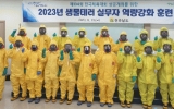 전남 전향윤 기자2023. 09.19[뉴스맘]전라남도가 안전한 전국체전을 치르기 위해 19일 전남여성가족재단에서 생물테러 대응 훈련을 개최했다. 훈련은 전남도와 시군 보건소 업무담당자 45명이 참석한 가운데 생물테러 의심 발생 대응, 개인보호장비 착·탈의, 다중탐지키트 사용법 등 내용으로 진행됐다. 생물테러는 사회 붕괴를 목적으로 바이러스, 세균, 곰팡이, 독소 등을 사용해 살상하거나 질병을 일으키는 행위다. 전남도는 오는 10월 대규모 군중 모임 행사인 전국체전이 안전한 가운데 성공적 대회로 치러지도록 감염병 예방·대응 계획을 마련했다. 이번 훈련도 그 계획에…