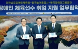 장성 전향윤 기자2023. 09.12[뉴스맘]전라남도장애인체육회는 12일 전남도청에서 한국농어촌공사, 한국장애인고용공단과 전국 최대 규모 ‘장애인 체육선수 취업 지원’ 업무협약을 했다. 협약식에는 전남도장애인체육회장인 김영록 전남도지사와 이병호 한국농어촌공사 사장, 홍성훈 한국장애인고용공단 광주지역본부장 등이 참석했다. 업무협약에 따라 전남장애인체육회는 장애인 체육선수 발굴과 훈련 및 대회 참가 등 장애인 체육 진흥, 한국농어촌공사는 장애인 체육선수 고용 증진과 체육 활동 지원, 한국장애인고용공단은 장애인 체육선수 고용 지원을 통한 장애인 일자리 창출에 적극 나…