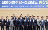 광주 전향윤 기자2023. 09.11[뉴스맘]전라남도는 11일 도청 왕인실에서 더불어민주당과 예산정책협의회를 열어 호남권 사회간접자본(SOC) 조기 확충 등 지역 현안 해결과 국비 확보 방안을 논의했다. 예산정책협의회에는 더불어민주당 박광온 원내대표, 송갑석 최고의원, 김민석 정책위의장, 서삼석 예결위원장 등 당 지도부 주요 인사와 신정훈 도당위원장과 지역 국회의원 전원이 참석했다. 전남도는 이날 교통지도를 획기적으로 바꾸고 지역 발전의 새로운 마중물이 될 ‘호남권 사회간접자본 조기 확충’의 시급성을 건의했다. 서남권이 새로운 발전 전기를 맞이하도록 속도 무제한의…
