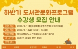 목포 전향윤 기자2023. 09.06[뉴스맘]목포시립도서관이 19일부터 11월 29일까지 운영하는 2023 하반기 도서관 문화프로그램 수강생을 모집한다. 이번 하반기 프로그램은 성인, 초등학생, 유아를 대상으로 문화·예술·독서 등 다양한 분야의 6개 강좌를 진행한다. 성인 대상으로 ‘보태니컬 수채화’, ‘배우기 쉬운 보자기아트’, ‘바른자세 바른마음 필라테스’ 3개 강좌를 운영하며, 초등학생 대상으로 ‘역사 심고 창의력 쑥쑥’ 강좌와 보호자와 함께 참여하는 ‘우리가족 보드게임DAY’를 운영한다. 유아 대상으로는 목포시 초등학교 병설유치원에 그림책 전문 독서교…