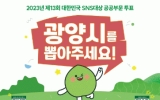 광주 전향윤 기자2023. 09.01[뉴스맘]광양시는 오는 4일부터 15일까지 전 국민을 대상으로 ‘2023년 제13회 대한민국 SNS 대상 투표 이벤트’를 진행한다고 밝혔다. 대한민국 SNS 대상은 올바른 SNS 활용 문화를 정착시키기 위해 2011년부터 제정됐으며, SNS 콘텐츠 분야에서는 대내외적으로 최고 권위를 인정받는 상이다. 이 상은 유튜브, 인스타그램, 페이스북 등 올해 SNS 활용지수를 종합적으로 평가해 1차 정량평가와 2차 전문가 평가를 거쳐 사용자 투표에서 높은 점수를 받아야 한다. SNS 대상 투표 이벤트는 전 국민 누구나 참여할 수 있다. …