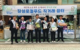 장성 전향윤 기자2023. 08.20[뉴스맘]장성군이 16~18일 3일간 서울 조계사에서 ‘도농상생 농특산물 직거래장터’를 열었다. 군은 음력 초하루 법회를 맞아 서울 조계사에 직거래장터를 마련하고 포도, 쌀, 곶감, 김치, 꿀 등 40여 종의 장성 로컬푸드(지역 농특산물)를 선보였다. 재단법인 장성먹거리통합지원센터, 농협연합사업단이 참여해 합리적인 가격으로 상품을 공급했다. 첫날인 16일에는 김한종 장성군수와 김연수 장성군의회 의원, 장흥모 농협 장성군지부장 등 관계자들이 현장을 찾아 장터 운영자를 격려했다. 장성군과 서울 조계사의 인연은 지난해 말부터 시작…