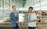 사회 전향윤 기자2023. 08.18[뉴스맘]고흥군은 지난 17일 고흥팜 축산농장이 2023년 축산기술 접목 우수농장에 선정돼 농촌진흥청 축산과학원장 등 15여 명이 참석한 가운데 현판식을 가졌다. 농촌진흥청 국립축산과학원에서는 매년 축산기술을 잘 접목해서 활용하고 있는 현장을 선정해 축산기술 접목 우수농장에 현판을 수여하고 있다. 이번 우수농장으로 지정된 고흥팜 신영수 농가는 축산농장관리시스템을 적극 활용해 발정재귀일, 송아지 백신 투약시기, 농장주요 일정 등을 ‘축사로’에 자료화시켜 공태일수 감소, 개량성과 향상으로 축산농가의 모범사례로 선정됐다. ‘축사로…