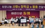 나주 전향윤 기자2023. 08.18[뉴스맘]신안군은 지난 17일 사)희망을나누는사람들과 희망나눔 장학금 및 물품 전달식을 했다고 밝혔다. 이날 전달식에는 1004섬 신안군 20명의 장학생에게 월 5만 원씩 2년간 2,400만 원 장학금과 3명에게 120만 원 상당의 컴퓨터를 전달했고, 신안군복지재단(이사장 이충만)에 2억 원 상당의 생필품을 취약계층에 지원되도록 지정 기탁했다. 김정안 회장은 “자라나는 아이들이 어려운 상황에도 꿈을 펼칠 수 있는 사회를 만들기 위해 지원을 아끼지 않겠다”라며 “앞으로도 신안군의 미래를 이끌어갈 아이들이 꿈과 희망을 잃지 않도록…