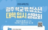 광주 전향윤 기자2023. 08.15[뉴스맘]광주시교육청이 오는 30일 오후 4시30분~9시30분 전남대학교 생활과학대학에서 ‘광주학교밖청소년지원센터’와 함께 ‘2024학년도 대입 대비 대학입시설명회’ 행사를 개최한다고 15일 밝혔다. 이번 행사에서는 광주권 대학 미니 박람회, 학교밖청소년 맞춤형 대학입시설명회, 1:1 개별 진학 상담 등 다채로운 프로그램을 제공한다. 미니 박람회는 전남대, 조선대를 비롯한 광주권 13개 대학의 입학사정관 등 대학관계자들을 초빙해 직접 대학, 학과, 입시 정보 등을 제공하도록 구성됐다. 또 설명회에서는 일반적인 형태의 입시정보 제공…