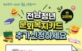 강진 전향윤 기자2023. 08.10[뉴스맘]보성군은 지역 청년에게 20만 원의 문화복지비를 지원하는 ‘전남 청년 문화복지카드’하반기 접수를 시작했다고 밝혔다. ‘2023년 전남 청년 문화복지카드 지원사업’은 전라남도에 거주하는 청년(19세~28세)을 대상으로 공연 관람, 학원 수강, 도서 구매 등 문화복지비를 연 20만 원 지원하는 사업이다. 하반기 신청 기간은 8월 1일부터 8월 31일까지이다. 신청 방법은 농협 카드 누리집을 통해 신청하거나, 신청자 주민등록상 주소지 관할 읍·면 주민센터에 방문 신청하면 된다. 신청 대상은 도내 2년 이상 거주 청년(19…