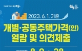 순천 전향윤 기자2023. 08.09[뉴스맘]순천시는 올해 6월 1일 기준으로 산정,검증한 개별주택가격을 오는 28일까지 소유자와 그 밖의 이해관계인에게 열람하고 의견을 듣는다고 밝혔다. 대상은 올해 1월 2일부터 6월 1일까지 신축, 증축, 토지분할 및 합병 등 변동사항이 있는 주택으로 총 628호다. 열람은 순천시 누리집과 부동산공시가격알리미에서 가능하며, 가격에 의견이 있는 소유자 등은 의견제출 기간 내 순천시청 세정과 또는 각 읍면동 행정복지센터에 의견을 제출하면 된다. 의견이 제출된 개별주택은 가격의 적정 여부를 재조사하여 결과를 제출인에게 개별 통지하…